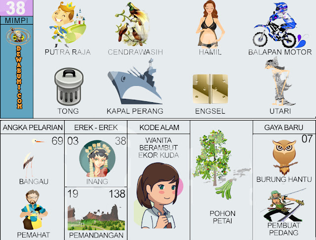 Tafsir Seribu Mimpi Erek Erek 2D Buku Mimpi 2D Bergambar Lengkap dari Abjad A-Z yang mencakup angka pelarian, kode alam togel, Taysen dan Nomor Gaya Baru. Erek Erek - Tanya Mimpi. Buku Mimpi 59 = 83 - 37 - 38 - 87 Putra Raja - Jam Dinding - Kakak Tua - Dakon - Kedondong - Kencur - Kaos - R Lesmana ♣ Angka Pelarian = 14. Togel online resmi prediksi buku mimpi 2D disaat ini sudah semakin banyak kita jumpai dan sudah dijadikan permainan yang wajib dimainkan dalam kehidupan sehari hari oleh para pecinta judi togel.. Buku mimpi : Putra Raja - Burung Cendrawasih - Wanita hamil - Balap Motor - Tong - Kapal Perang - Engsel - Utari - Burung Bangau.